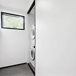This Blavand holiday home comes with a bathroom with a hot tub, a shower, and a washing machine. Dryers are included for added comfort.